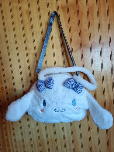 - This kawaii furry Cinnamoroll bag has two cute 3D bows on the top, which are embroidered.